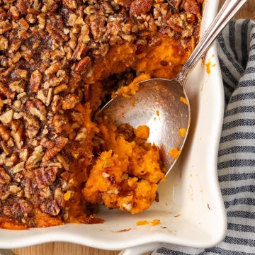 Bourbon Sweet Potato Casserole with Buttery Pecans
