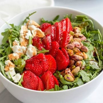 Arugula Salad with Strawberries, Pistachios and Goat Cheese